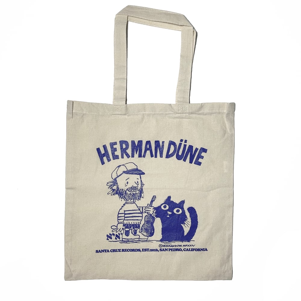 Herman Düne Tote Bag (LP 🎵 Size) Electric Blue on Off-White