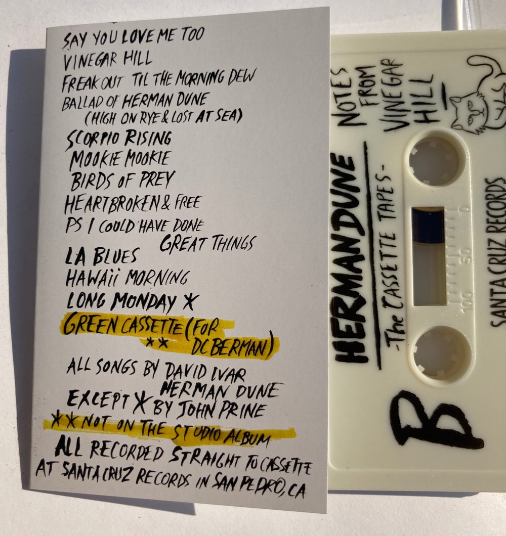 13 songs! Acoustic! Recorded straight to cassette! This is NOT the studio album. This is a different album, ONLY ON CASSETTE. These are special, solo, acoustic versions of the songs, plus one exclusive song, Green Cassette, for David Berman. Limited Edition. Made In Canada.